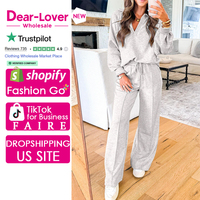 Caro-Amante Atacado Mulheres Polo Collar V Neck Pullover e Drawstring Sweatpants 2 Peças Set