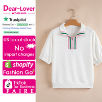Dear-Lover US Warehouse Sem Import Charges Atacado Mulheres Listrado Collar Patchwork Texturizado Meia Manga Blusa